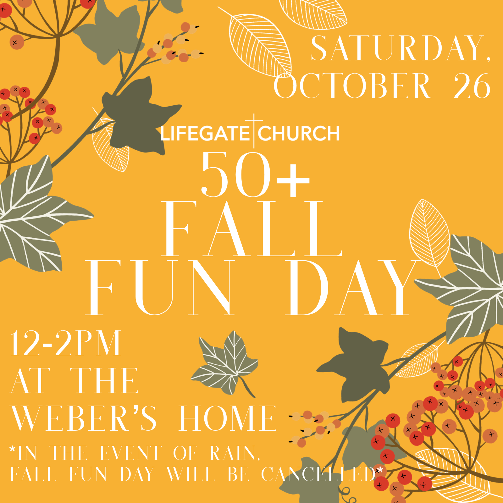 Join us for a day of Fall fun with cornhole, a closest to the “pin” golf contest, friends, food and more! Just bring your favorite Fall food to share, a camp chair (if you have one), and all your friends!